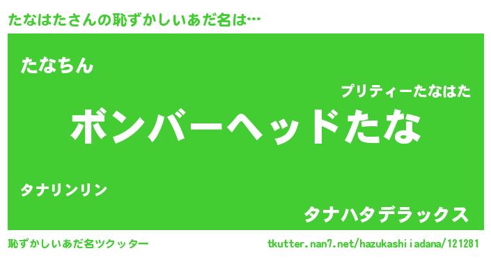 | 意味不明あだ名 | 『眠気覚ましガムたなはた味』 |