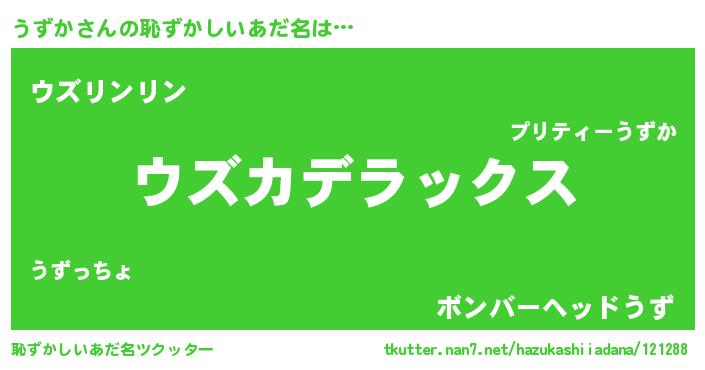 | 欧米人風あだ名 | 『ケンブリッジうずか』『ウサインうずか』 |