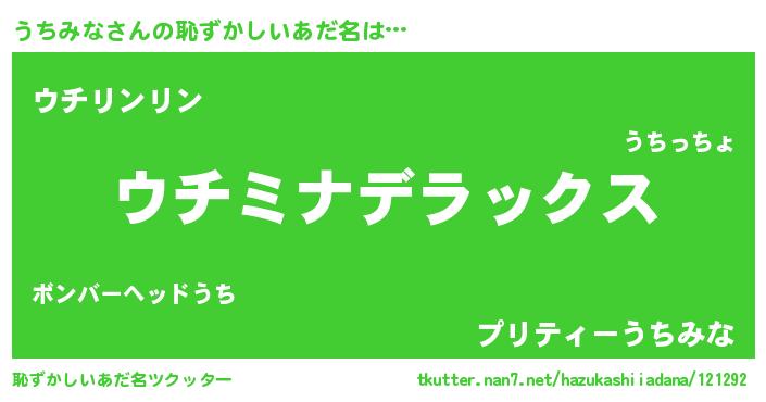 | 意味不明あだ名 | 『自称うちみな』『ペロリンうちみな』 |