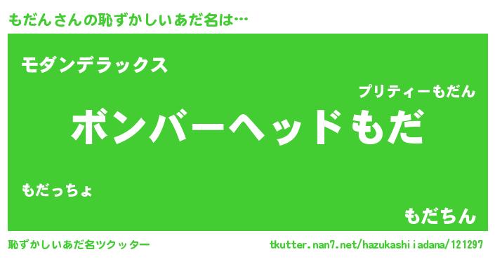 | ヘコむあだ名 | 『もだん(笑)』『もだふぇ~』 |