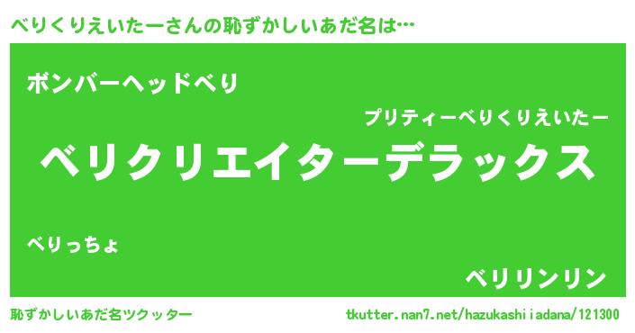 | 意味不明あだ名 | 『自称べりくりえいたー』 |