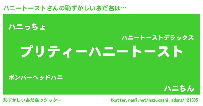 | 胡散臭い通販商品みたいなあだ名 | 『モテモテ間違いなしブレスレット…その名も「ハニートースト」』 |