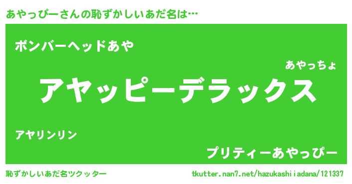 | ヒーロー風カッコイイあだ名 | 『最強戦士アヤッピー』『仮面アヤダー』 |