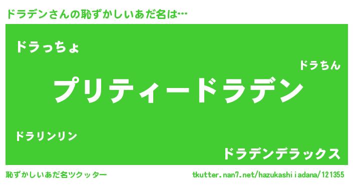 | 男性向けラノベタイトル風あだ名 | 『転生したらドラデンだった件』 |