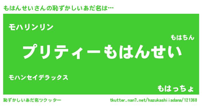 | ヒーロー風カッコイイあだ名 | 『仮面モハダー』『スーパーモハンセイ』 |