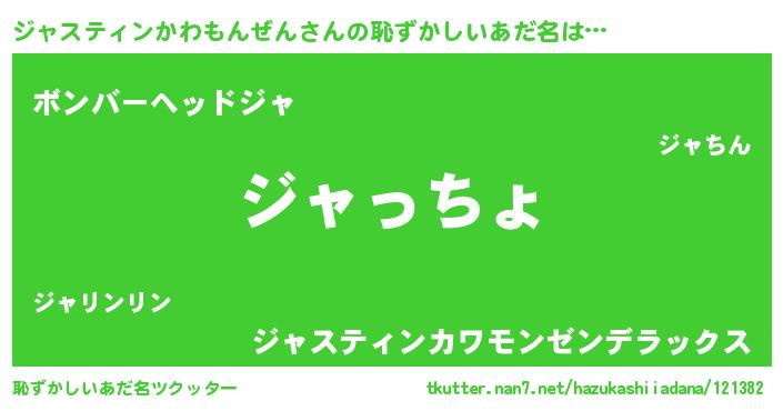 | 意味不明あだ名 | 『ジャスティンかわもんぜんフォーエバー』 |