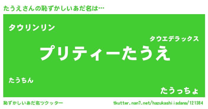 | ヒーロー風カッコイイあだ名 | 『仮面タウダー』『スーパータウエ』 |