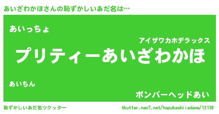 | 胡散臭い通販商品みたいなあだ名 | 『億万長者になれる霊験あらたかなお札…その名も「あいざわかほ」』 |