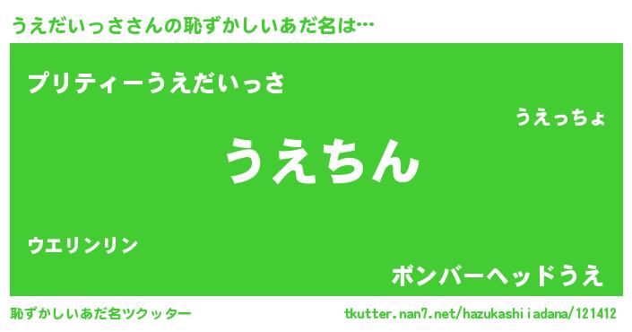 | 意味不明あだ名 | 『住所不定無職うえだいっさ(13歳)』 |