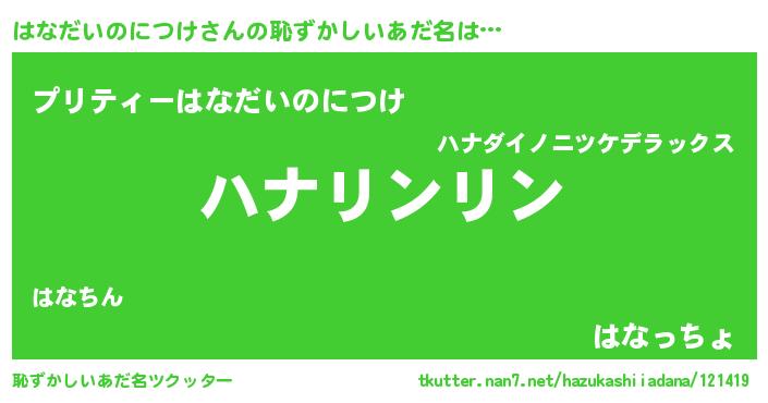 | ポケモン風あだ名 | 『ヒハナダイノニツケ』『ハナチュウ』 |