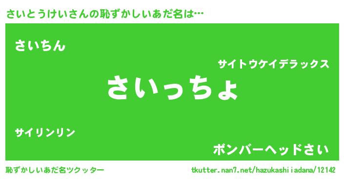 | 意味不明あだ名 | 『さいとうけいフォーエバー』 |