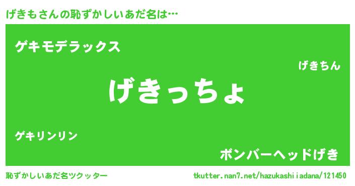 | 男性向けラノベタイトル風あだ名 | 『魔弾の王とげきも』 |