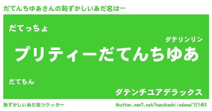 | 男性向けラノベタイトル風あだ名 | 『だてんちゆあの憂鬱』 |
