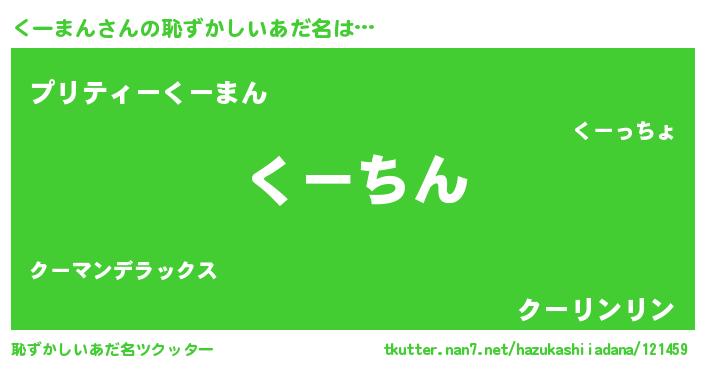 | ヘコむあだ名 | 『くーまん(苦笑)』『くーもー』 |