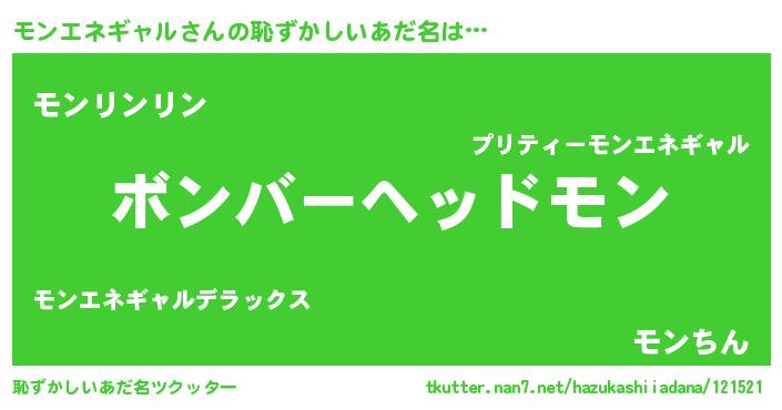 | ヘコむあだ名 | 『モンっちょ』『モンエネギャル(笑)』 |