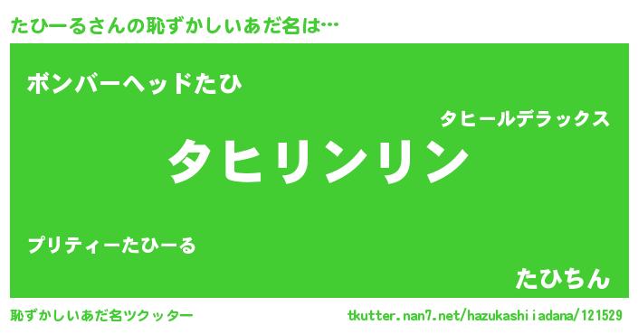 | ヘコむあだ名 | 『たひを』『たひーる(遠い目)』 |