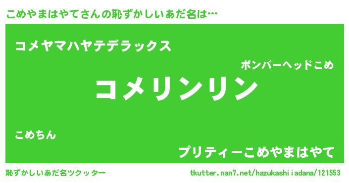| 料理風あだ名 | 『こめやまはやてごはん』 |