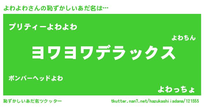 | ヘコむあだ名 | 『よわっふぃ~』『つくし』『よわを』 |