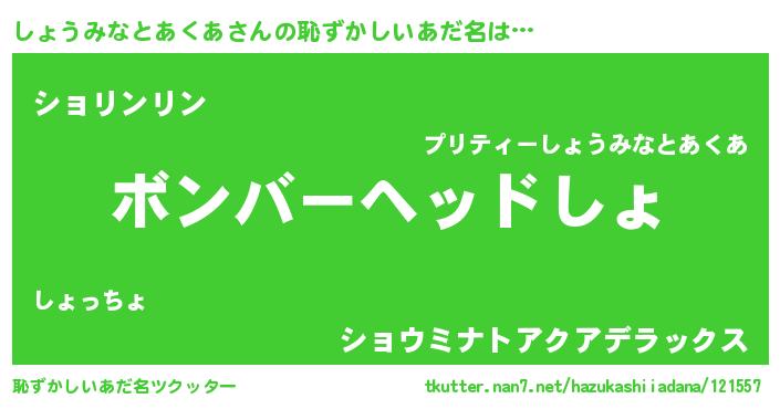 | 料理風あだ名 | 『しょうみなとあくあのトマト煮』 |