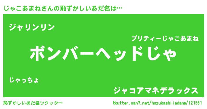 | ヘコむあだ名 | 『じゃぷりん』『じゃにー』『豆乳』 |