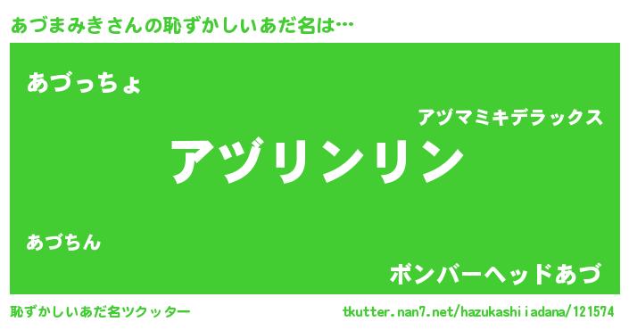 | 欧米人風あだ名 | 『アンジェラ・あづまみき』 |