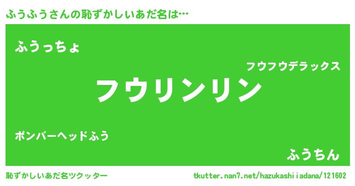 | 可愛いあだ名 | 『ふうぷりん』『ふっうぃー』 |