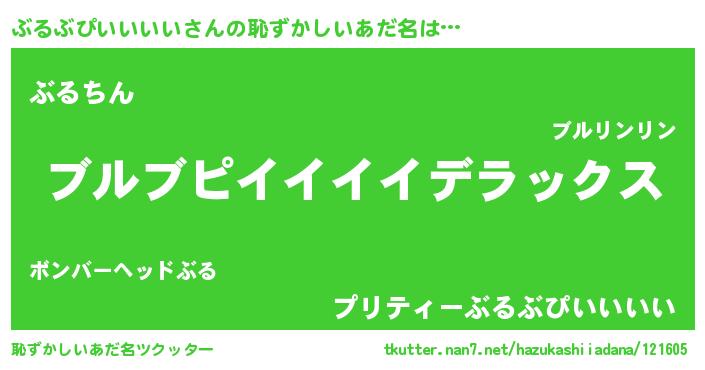 | 意味不明あだ名 | 『自称ぶるぶぴいいいい』 |
