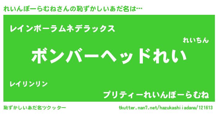| ヘコむあだ名 | 『れいふぇ~』『れいんぼーらむね(震え声)』 |