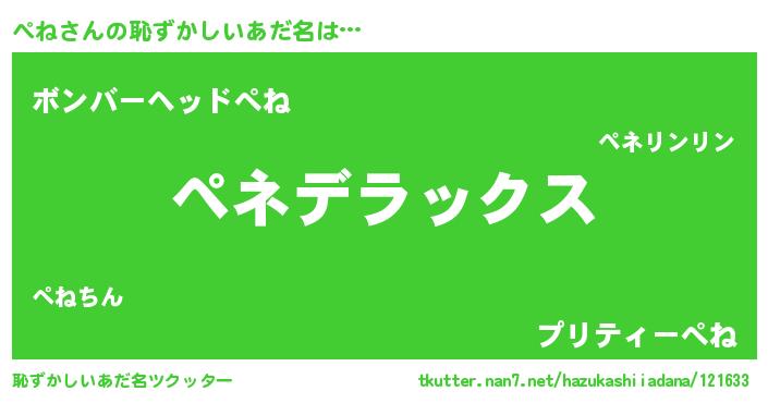 | ヒーロー風カッコイイあだ名 | 『最強戦士ペネ』『慈愛の使者ぺね』 |