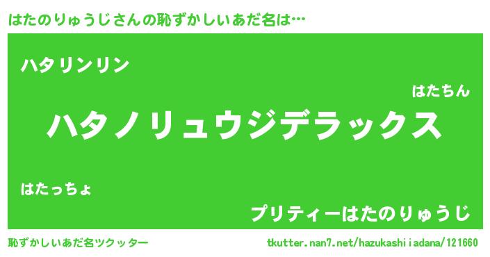 | 意味不明あだ名 | 『自称はたのりゅうじ』 |