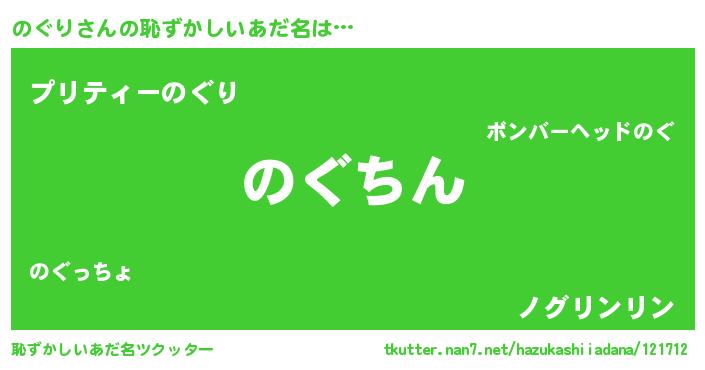 | ヘコむあだ名 | 『のぐり(苦笑)』『のぐにゅー』 |