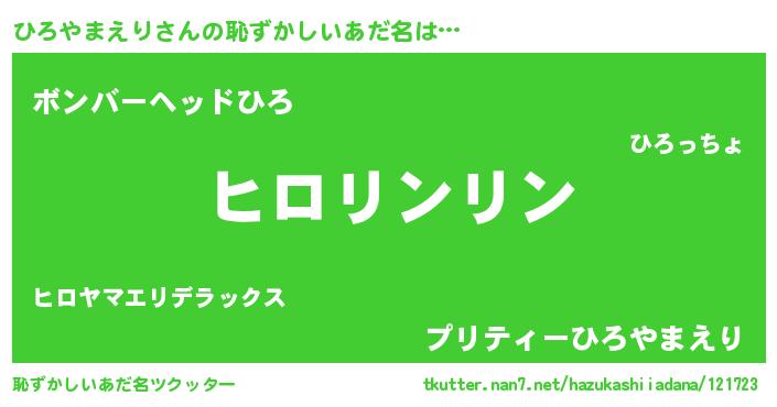 | 意味不明あだ名 | 『とにかく怪しいひろやまえり』 |
