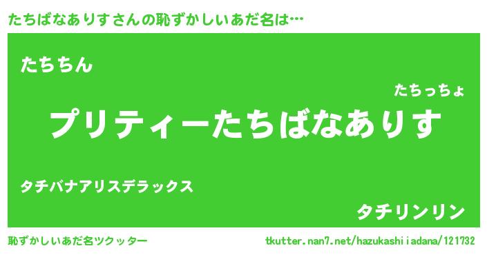 | ヘコむあだ名 | 『たちにー』『たちばなありす(笑)』 |