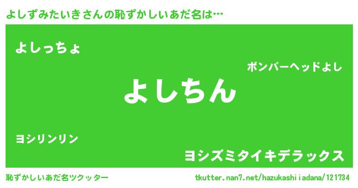 | ヘコむあだ名 | 『よしずみたいき(震え声)』『なまこ酢』 |