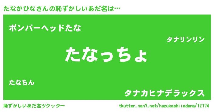 | ヘコむあだ名 | 『豆乳』『たなっぺ』『たなっふぃ~』 |