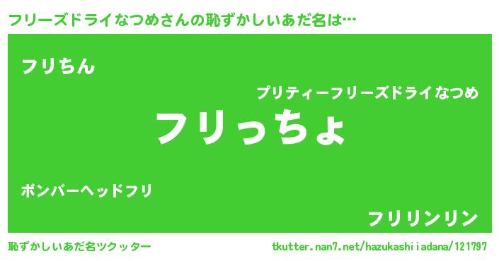 | ファンタジー風あだ名 | 『エターナルフリーズドライナツメー』 |