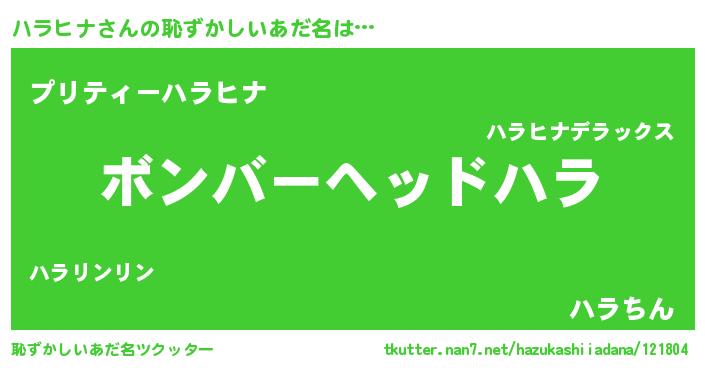 | ヘコむあだ名 | 『ハラもー』『ハラヒナ(笑)』 |