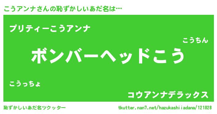 | ヘコむあだ名 | 『こうもー』『こうアンナ(笑)』 |
