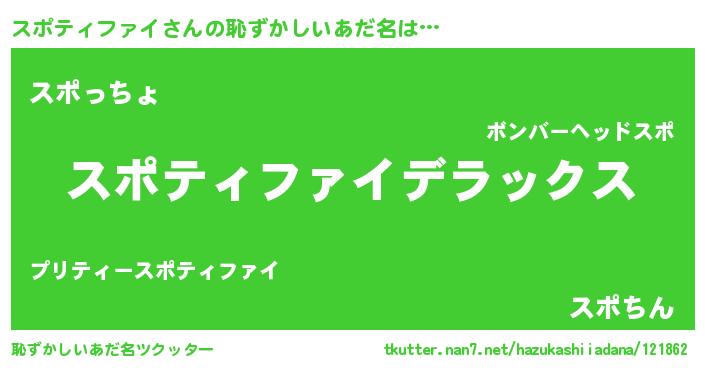 | 意味不明あだ名 | 『自称スポティファイ』 |