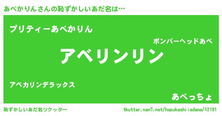 | 意味不明あだ名 | 『とにかく怪しいあべかりん』 |