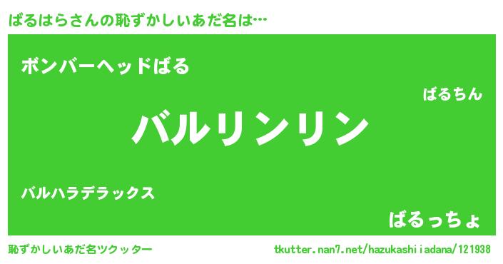 | 意味不明あだ名 | 『とにかく怪しいばるはら』 |