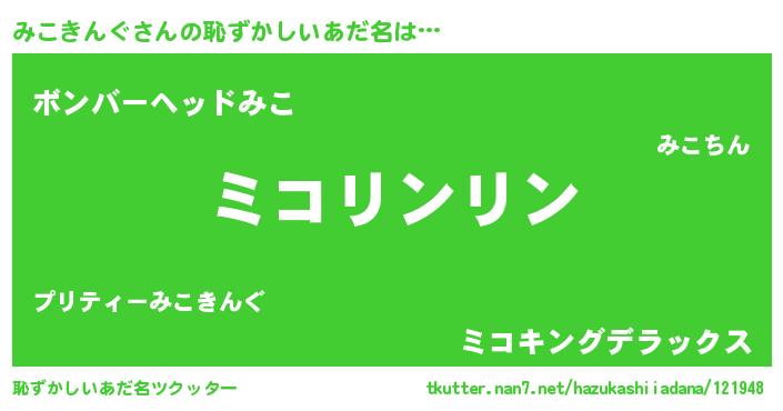 | 男性向けラノベタイトル風あだ名 | 『緋弾のミコキング』 |