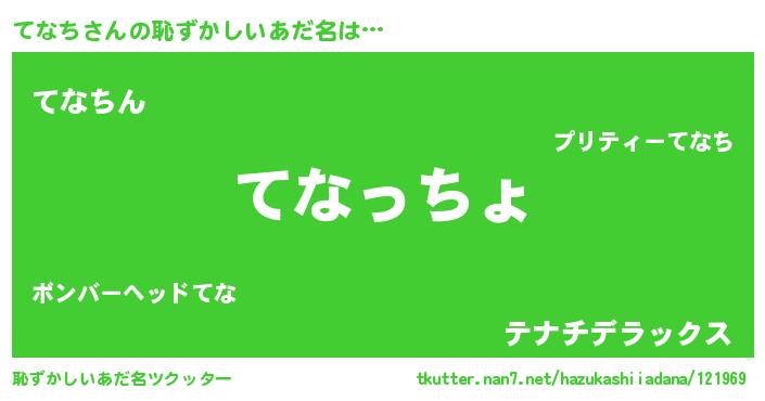 | ヘコむあだ名 | 『牛乳』『てなち(爆)』『てなにー』 |