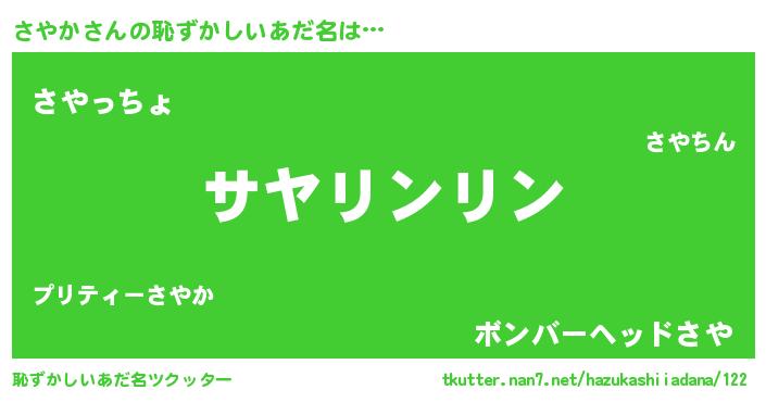 ヘコむあだ名 | 『さやぷりん』『酢こんぶ』 |