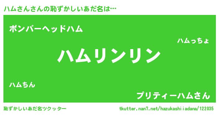 | ヒーロー風カッコイイあだ名 | 『魔戒騎士ハム』『友情の使者ハムさん』 |