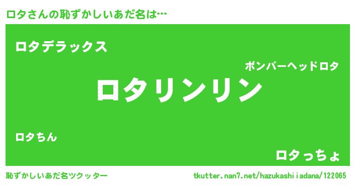 | 女子向けラノベタイトル風あだ名 | 『ロタは平凡を望む』『ロタアンティーク』 |