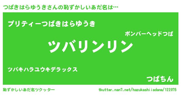 | 男性向けラノベタイトル風あだ名 | 『つばきはらゆうきの嫁は女の子じゃないと思った?』 |
