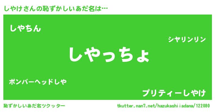 | 欧米人風あだ名 | 『しやけクリステル』『ダレノガレしやけ』 |