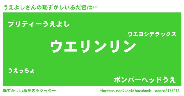 | ピコ太郎風あだ名 | 『ウエ四郎』『ウコ次郎』『ウウ太郎』 |