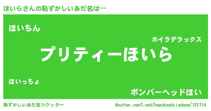 | ヘコむあだ名 | 『ほいふぇ~』『ほいら(笑)』 |